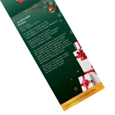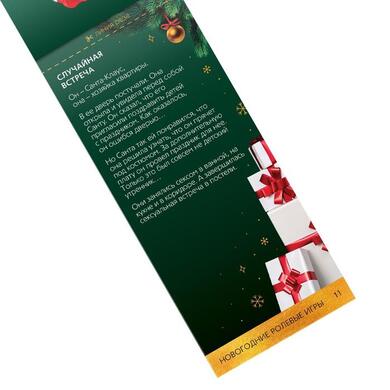 Внутри вы найдёте 20 купонов, в которых вас ждут пикантные новогодние сценарии. Отрезайте купоны по линии реза, выбирайте подходящий и воплощайте написанное в жизнь! Осталось только подготовить реквизит, чтобы вжиться в образ, и насладиться процессом. Этот Новый год оставит только приятные впечатления!
