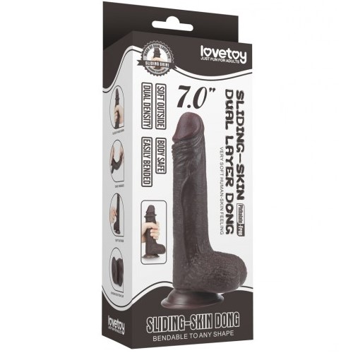 Черный фаллоимитатор на присоске Lovetoy Sliding-Skin Dual Layer Dong 18 см