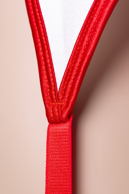 Эластичный костюм медсестры Candy Girl® Leann из перламутрового трикотажа с глубоким декольте и пажами декорирован контрастной отделкой. Регулируемые пажи в паре с чулками обеспечат идеальное прилегание и натяжение по фигуре. Короткие рукава, накладные карманы, контрастные Т-стринги с ластовицей и матовые чулки с плотной резинкой завершают образ.