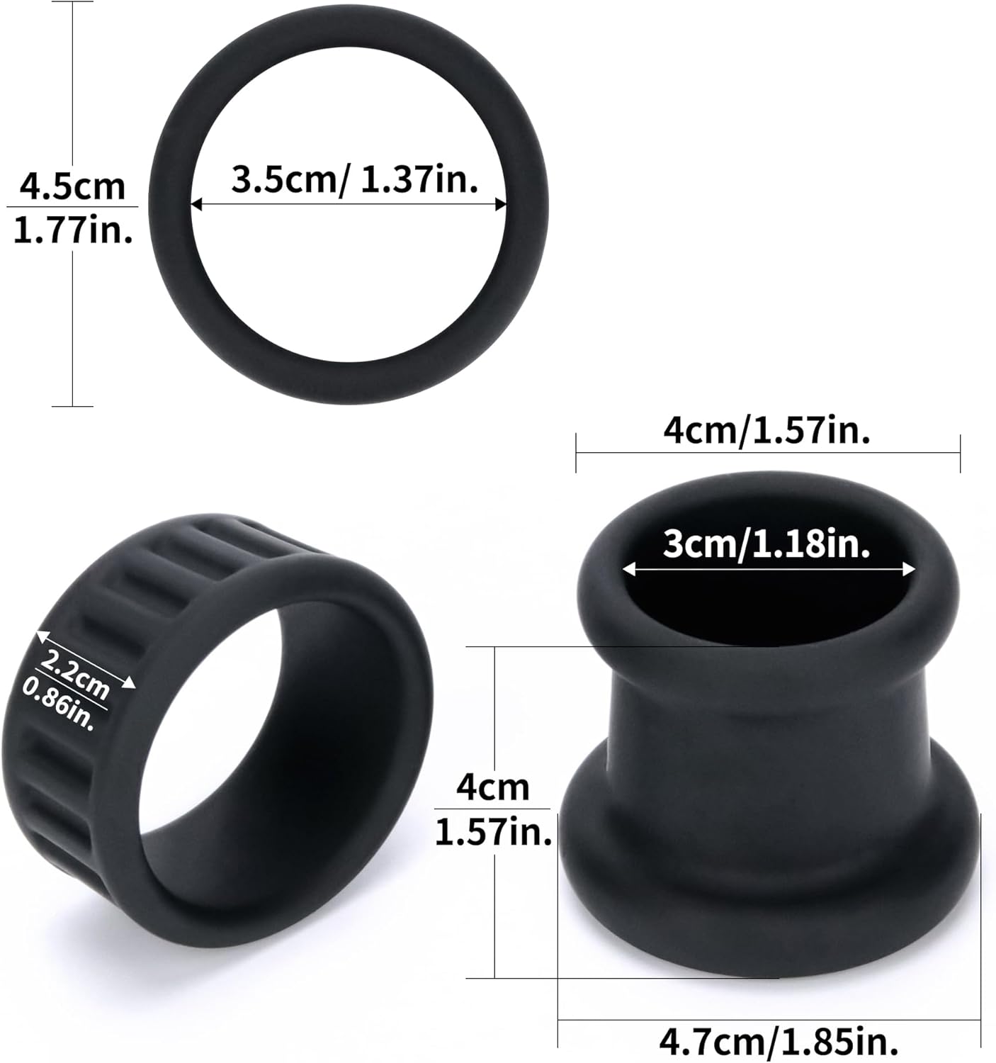 Кольцо украшено эффектными чёрными силиконовыми ребрами, обеспечивающими интенсивное и длительное растяжение. Созданно для тех, кто ценит прочное сцепление в сочетании со значительным растяжением, это украшение сохраняет свою форму, надежно облегая тело.