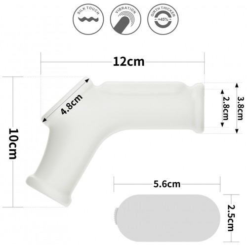 Размеры: внутренний диаметр насадки - 2,8 см, внешний диаметр - 3,8 см; длина части насадки на пенис - 13,3 см, длина части насадки на мошонку - 10 см, вибропуля: длина 5,6 см, ширина 2,5 см
