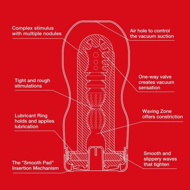 Анатомический продуманный дизайн. Внутри Deep Throat вас встретит мягкая рельефная поверхность с множеством больших и маленьких выступов, ребер и зоной для круговой стимуляции головки. Резервуар с лубрикантом Tenga уже содержит внутри лубрикант. Специальный резервуар со смазкой позволяет сохранять вход Tenga всегда скользким и влажным.