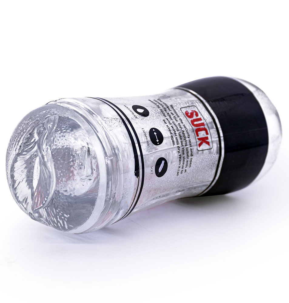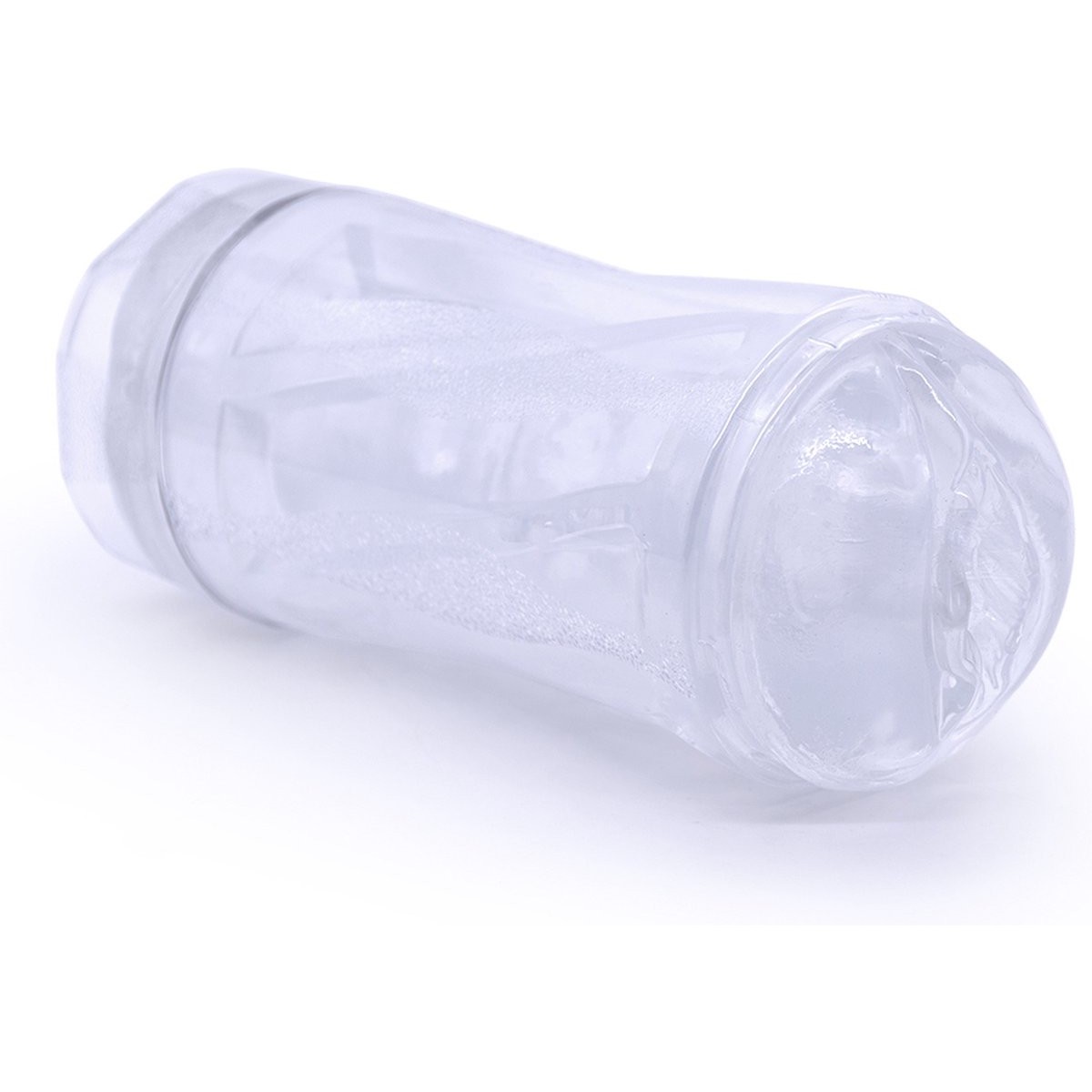 Прозрачный текстурированный мастурбатор в колбе с мягкими бороздками внутри для дополнительной стимуляции.