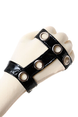 Этот игровой костюм из эластичного материала wetlook с контрастными лаковыми вставками - эффектный образ для страстных натур. Стрепы, отложной воротник с манишкой на молнии и стреп-имитация чокера формируют единую деталь костюма – топ. Стрепы на трусиках привлекают внимание к бедрам. Козырек на эластичной резинке, металлические затемненные очки-авиаторы, пластиковые наручники и стреп-митенка на кнопке дополняют образ. Чулки в крупную сетку на широкой резинке с усиленными носочками входят в комплект.
