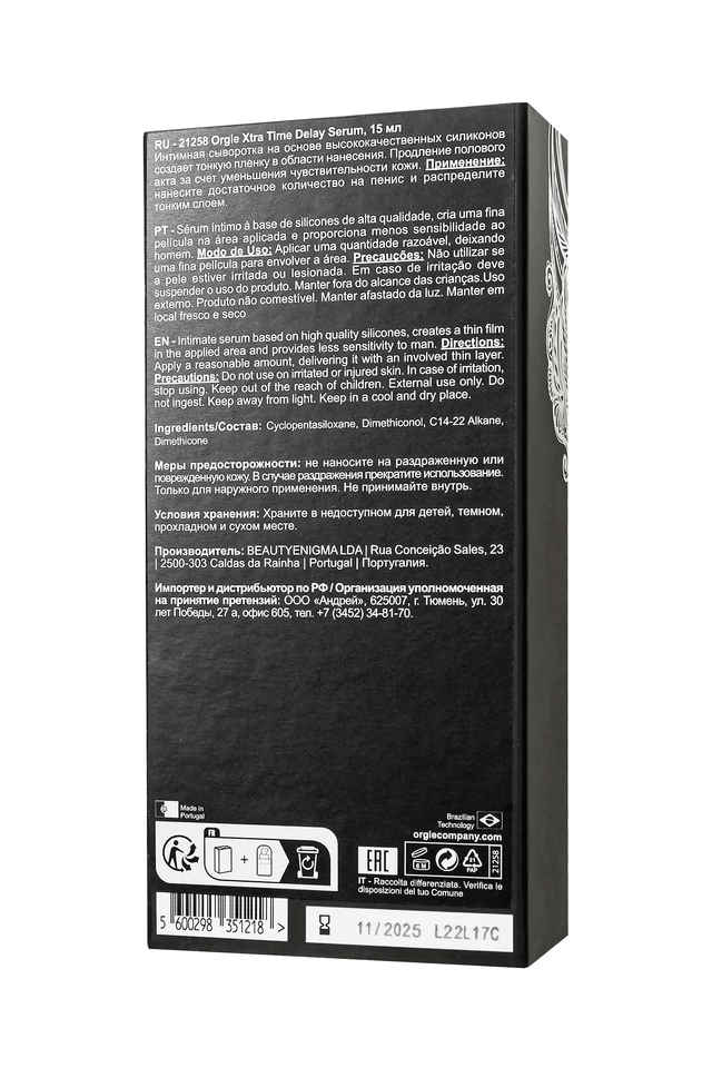 Откройте новую главу удовольствия с сывороткой Xtra Time Delay Serum от знаменитого бренда ORGIE! В ее основе – высококачественный силикон, который нежно обволакивает пенис тонкой пленкой, способствуя снижению его чувствительности. И это не анестетики! Забудьте о бензокаине и лидокаине. Функция сыворотки Xtra Time Delay - уменьшение чувствительности полового члена, которое приносит максимум удовольствия. Забудьте о трении и сконцентрируйтесь на наслаждении. Пусть удовольствие продлится дольше, чем вы ожидали.