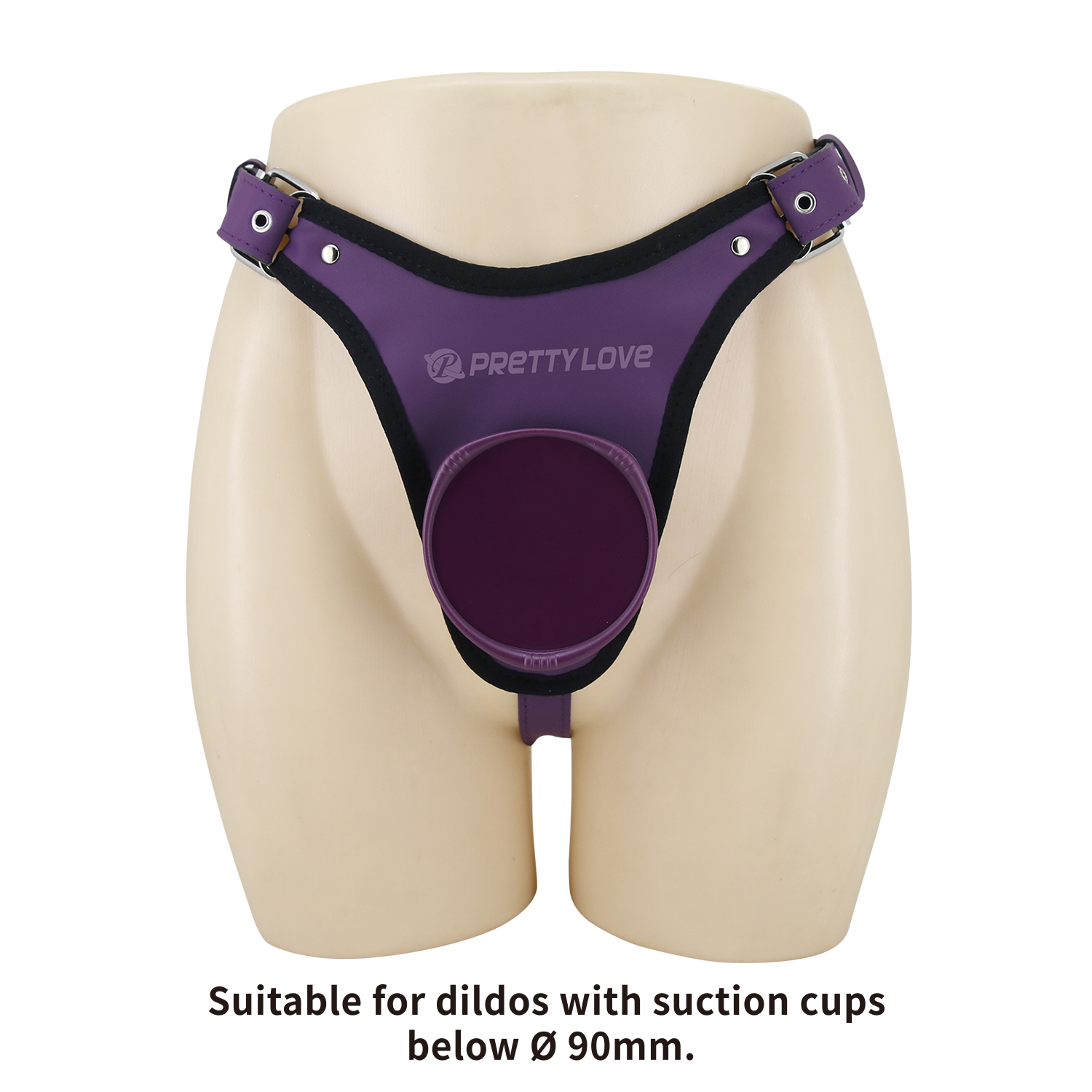 Уникальная конструкция держателя позволяет использовать фаллоимитаторы, оснащенные присоской (диаметром до 90 мм). Вам не нужно с усилием вставлять игрушку в тугое кольцо — достаточно просто закрепить основание дилдо на специальной площадке гарнесса. Это открывает возможность мгновенной смены сценариев: используйте классический размер, увеличенный фаллоимитатор или модель для двойного проникновения, просто меняя насадки. Гарнесс выполнен в эргономичном формате «трусики» из мягкого фиолетового материала с контрастной черной окантовкой. Система ремней с надежными металлическими пряжками и люверсами позволяет точно отрегулировать посадку по телу, обеспечивая комфорт и свободу движений. Подходит для обхвата талии и бедер в диапазоне 60–127 см. Идеален для использования в паре, позволяя одному из партнеров взять на себя активную роль. Качественные материалы и прочная фурнитура гарантируют долговечность аксессуара.