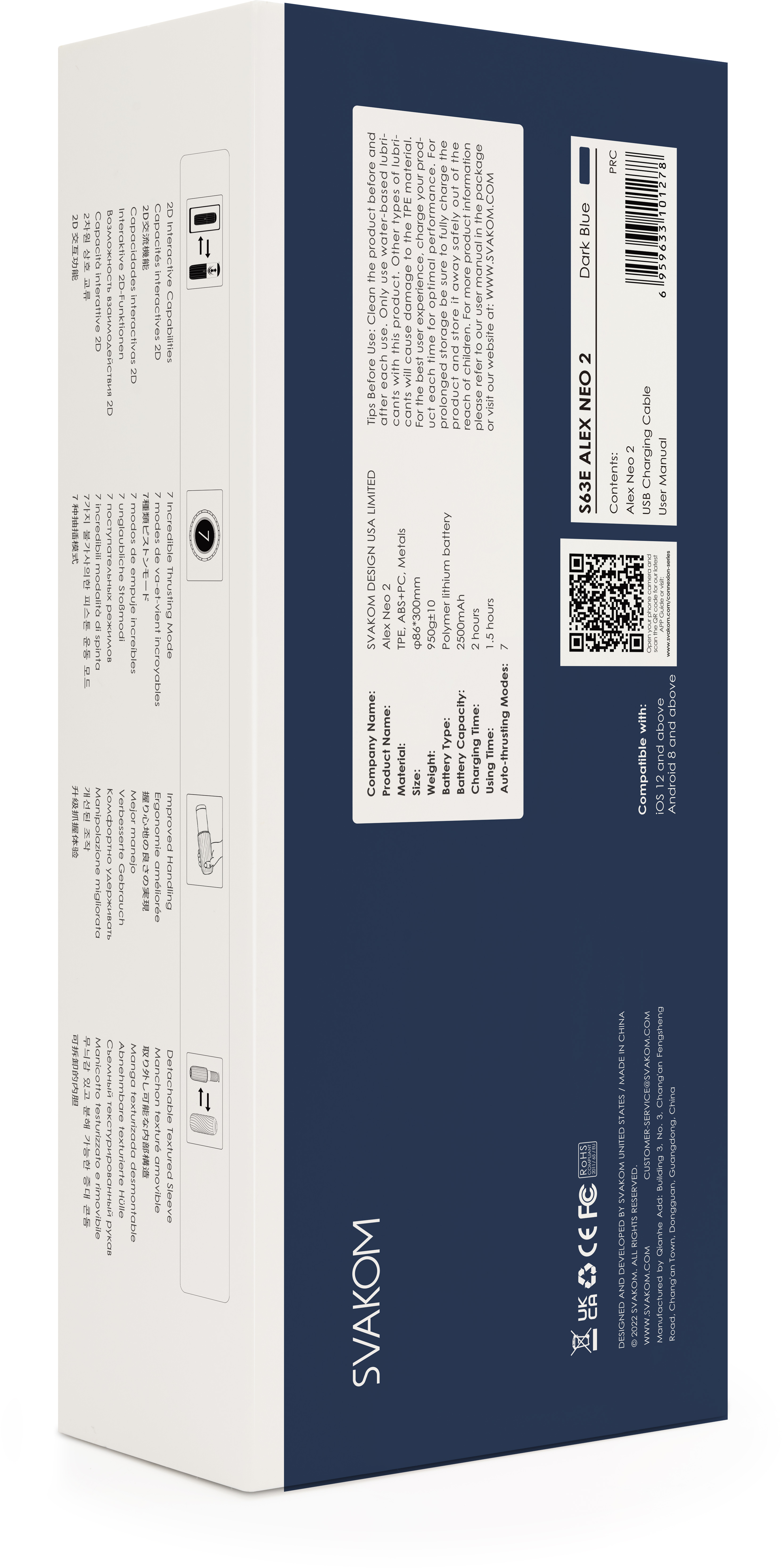 Одной из самых интересных функциональных возможностей является дистанционное управление с помощью бесплатного мобильного приложения SVAKOM APP для iOS и Android, а также синхронизация с интерактивными 2D-видео для взрослых. Компактный дизайн с защитной крышкой обеспечивает удобство использования и хранения. SVAKOM Alex Neo 2 изготовлен из безопасных материалов, таких как TPE, ABS и PC.