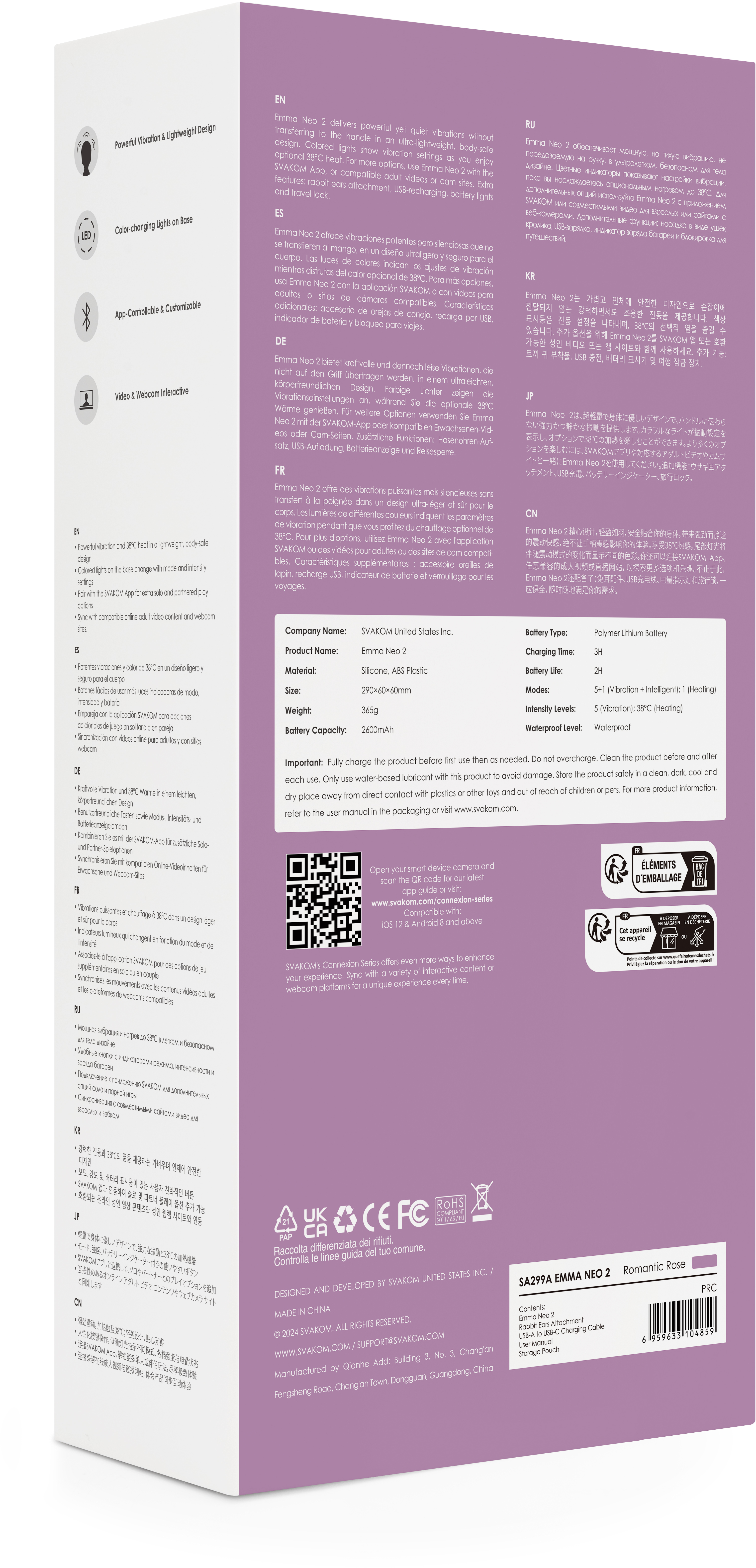 Emma Neo 2 создана для максимального комфорта и удовольствия. Лёгкий вес, бесшумный мотор и высококачественный гипоаллергенный силикон делают её безопасной и удобной в использовании. Идеальна как для самостоятельного использования, так и для игр с партнёром.