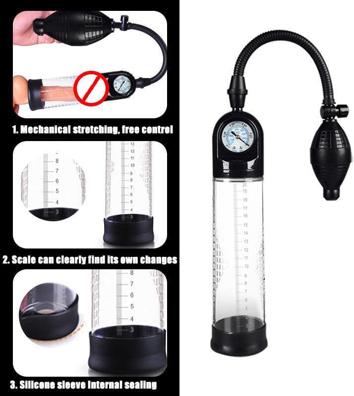 Помпа предназначена для увеличения размеров полового члена и коррекции его формы. Само устройство состоит из прозрачной колбы, шланга с механическим насосом для откачки воздуха и эластичной манжеты.