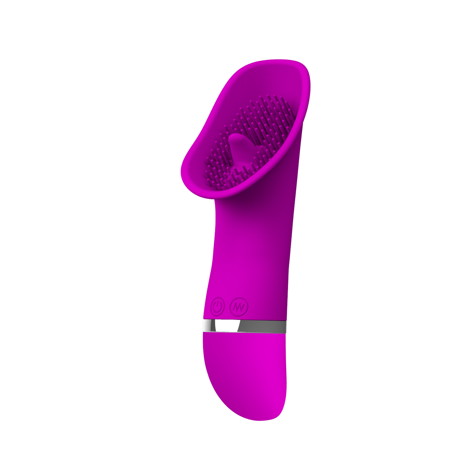 Игрушка имеет эргономичную изогнутую форму с текстурированной рабочей поверхностью, оснащённой рельефными выступами для усиления стимуляции.