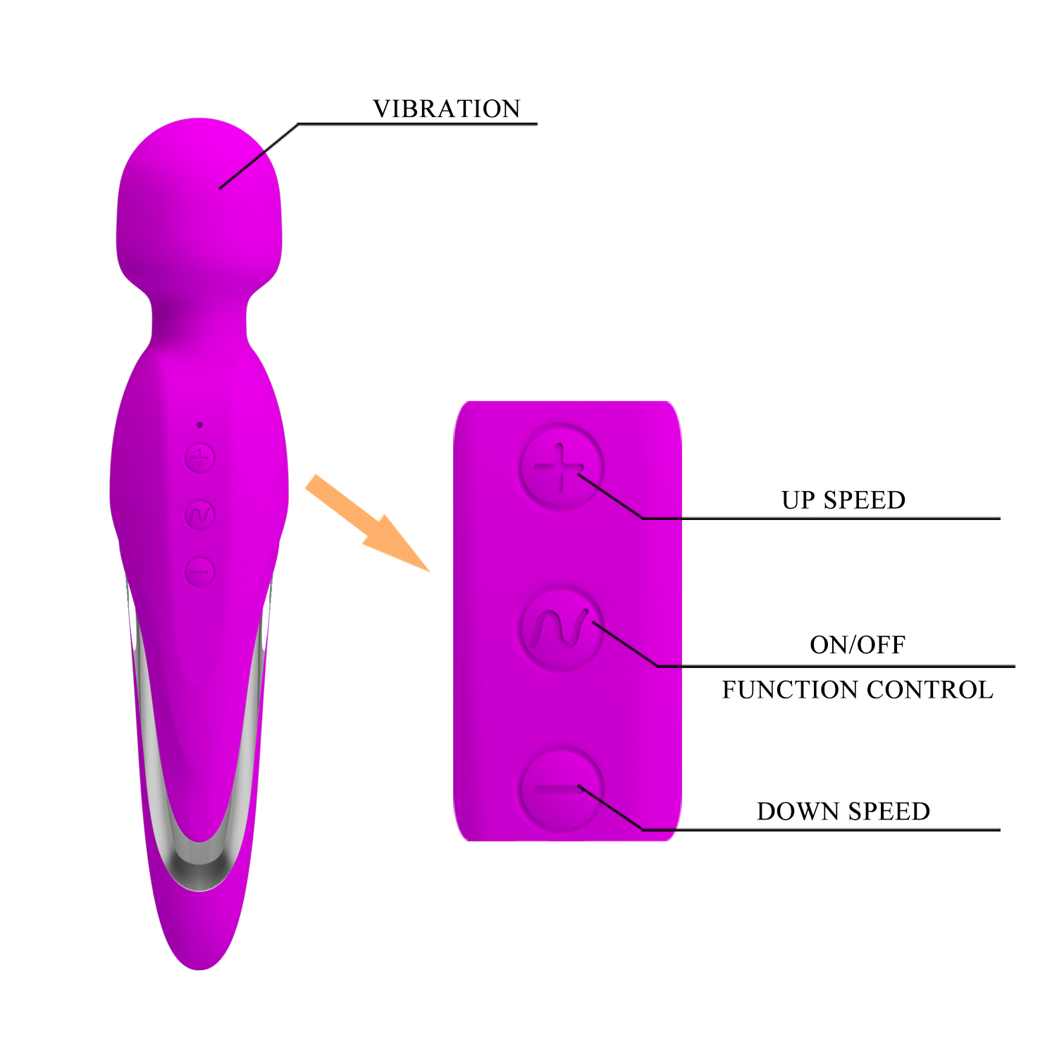 Размеры: общая длина массажера 21 см, диаметр головки 4 см