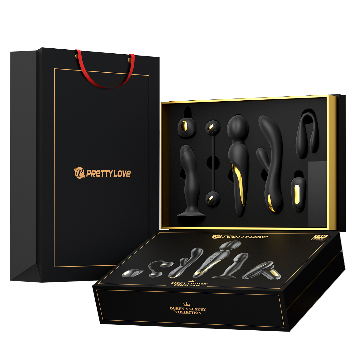 Набор Queens Luxury Collection, покрытый 18-каратным золотом, невероятно полный и идеально подходит для пар, которые любят использовать различные виды игрушек в своих отношениях