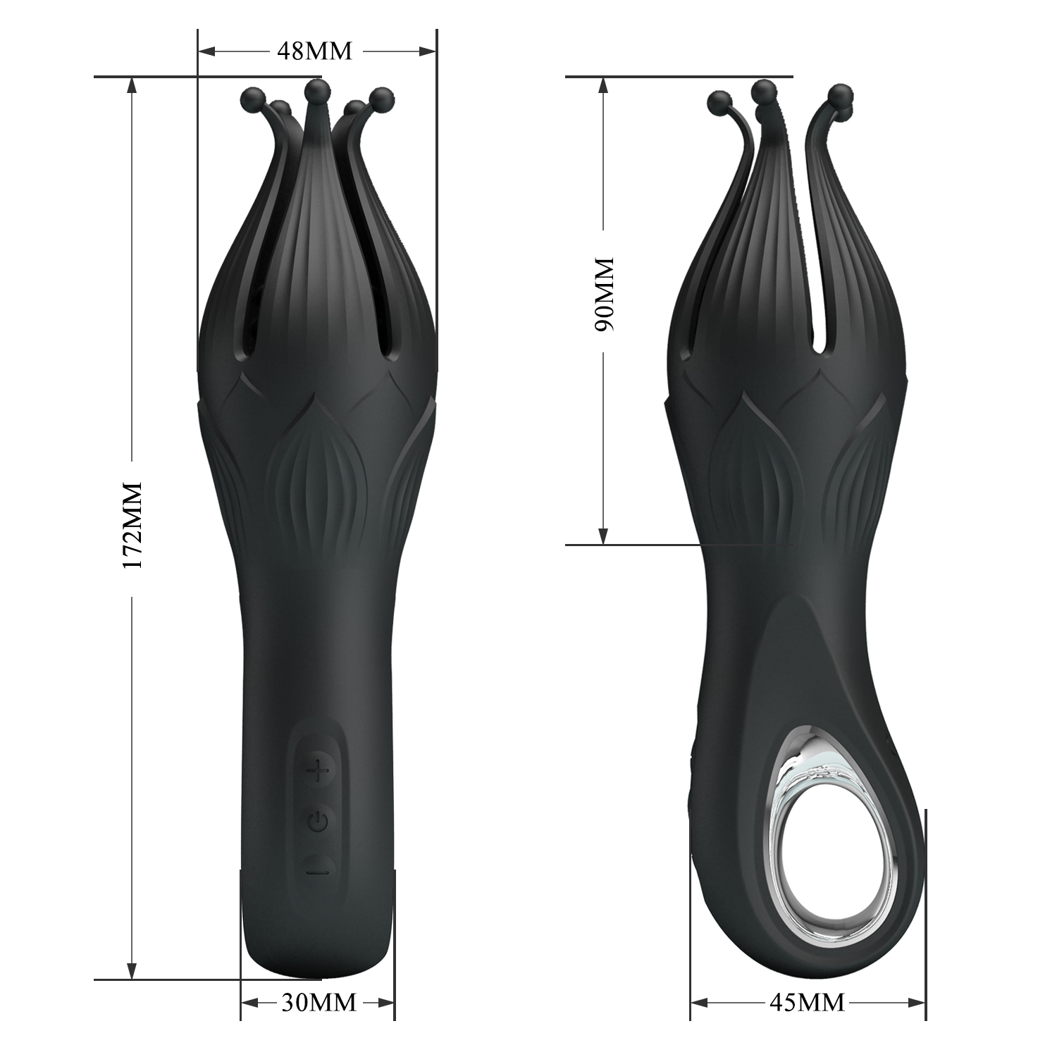 Позвольте себе роскошь многогранного наслаждения с уникальным массажером Pretty Love Arella. Его дизайн вдохновлен цветущим лотосом: пять гибких «лепестков» с миниатюрными шариками на кончиках обволакивают тело, обеспечивая одновременную стимуляцию больших зон и точечное воздействие на самые чувствительные точки. Мощный мотор, скрытый в эргономичной ручке, предлагает 12 режимов вибрации — от глубокого урчания до игривой пульсации. Блестящее хромированное кольцо у основания добавляет устройству премиальный вид и служит удобным переключателем режимов. Полностью водонепроницаемый корпус и мягкий силикон делают каждую встречу с этим гаджетом незабываемой.