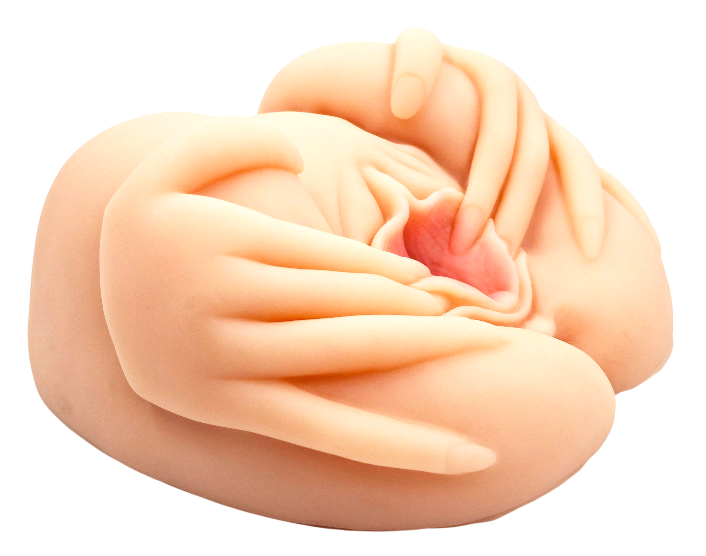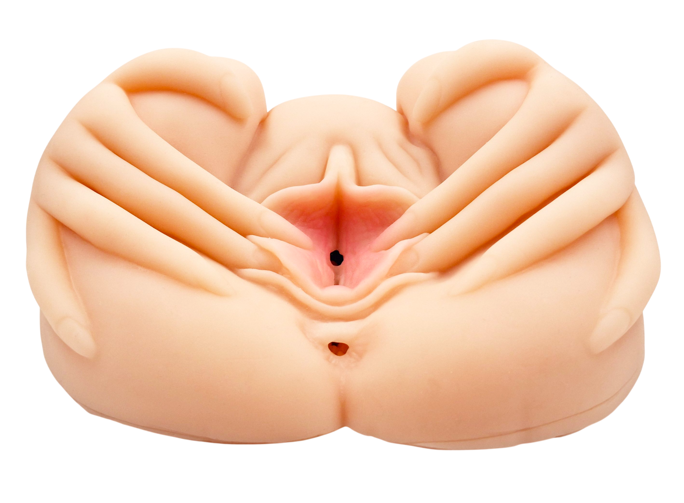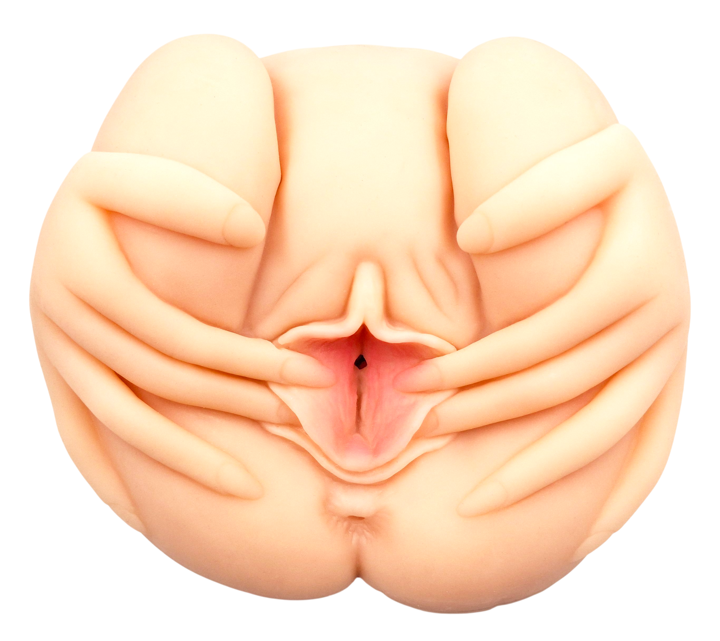Модель имеет невероятно реалистичный дизайн: руки девушки раздвигают большие и малые половые губы, открывая вашему взору манящие дырочки.