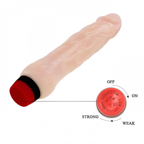 Вибрация может быть легкой или мощной, распространяется равномерно по всему телу фаллоса от основания до головки, плавно и точно настраивается регулятором в основании.