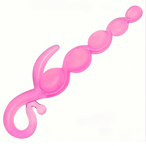 1. гибкая анальная розовая елочка с отростком-стимулятором и изящной ручкой для удобства эксплуатации;