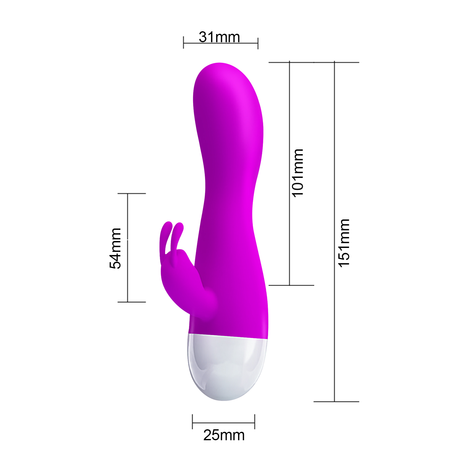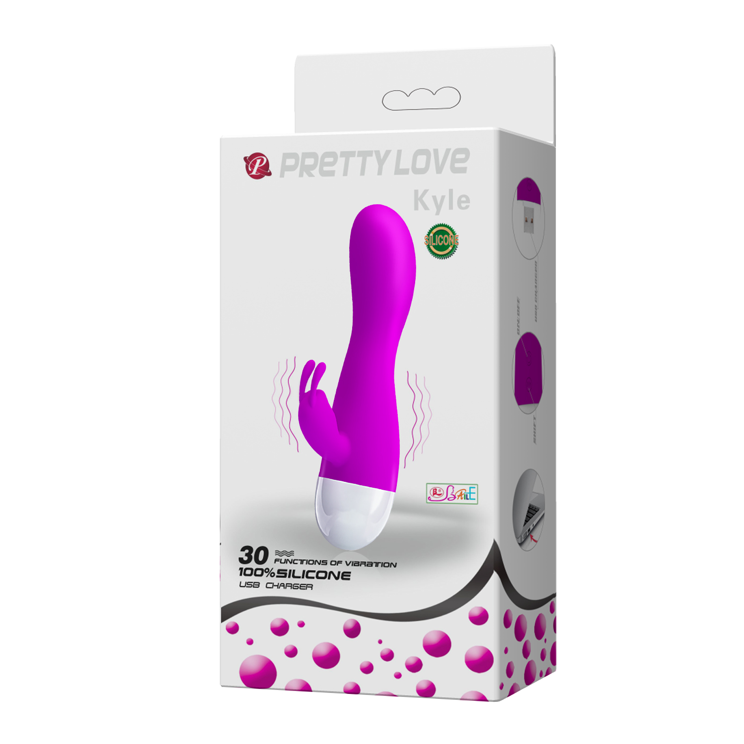 Вибратор Pretty Love Kyle изготовлен из высококачественного силикона без содержания фталатов и вредных веществ. Материал очень нежный, шелковистый и приятный на ощупь. Силикон полностью безвредный для здоровья и гипоаллергенный. Выполнен вибратор в классической форме rabbit, а поэтому обладает двумя рабочими стволами. Крупный основной ствол отвечает за стимуляцию влагалищных эрогенных зон, а маленький боковой отросток - за клиторальные ласки. Вагинальный ствол имеет гладкую, нежную поверхность, а также крупную головку, которая находится слегка под изгибом. Во время работы она отлично стимулирует не только влагалищные эрогенные зоны, но и точку G. Клиторальный отросток сделан в виде кролика с длинными гибкими ушками, которые и ласкают клитор интенсивными движениями. Таким образом, с Pretty Love Kyle Вы получите двойную стимуляцию: вагинальную и клиторальную. Мощный мотор секс-игрушки подарит Вам 30 разнообразных режимов вибрации. Управление происходит с помощью кнопок на корпусе. В вибратор Pretty Love Kyle встроен USB-порт, а поэтому для подзарядки игрушки Вам даже не понадобится шнур. Просто подключите вибратор к ноутбуку или любому другому подходящему адаптеру.