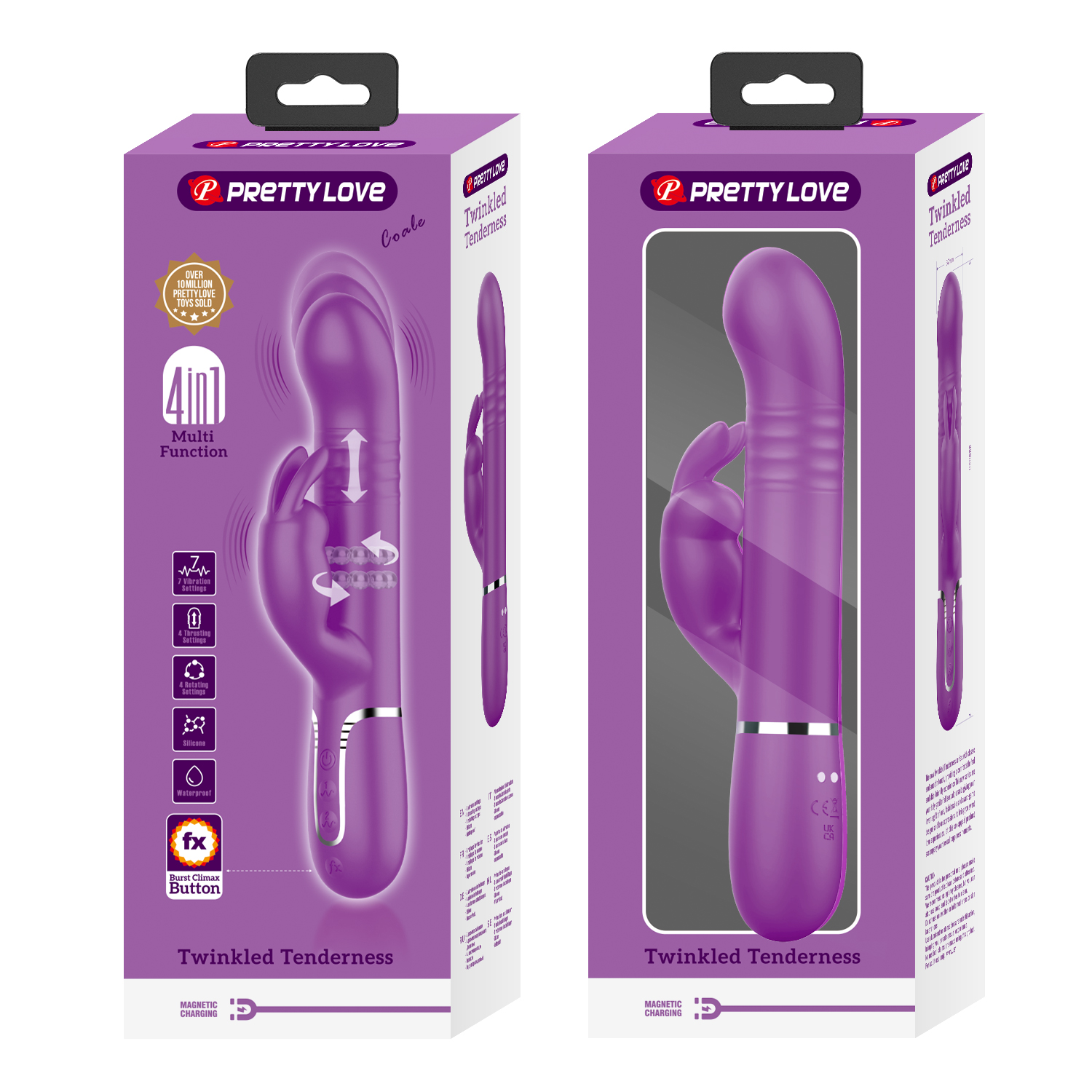 Pretty Love Twinkled Tenderness — это многофункциональный вибратор-кролик в ярком пурпурном цвете, созданный для комплексной стимуляции.
