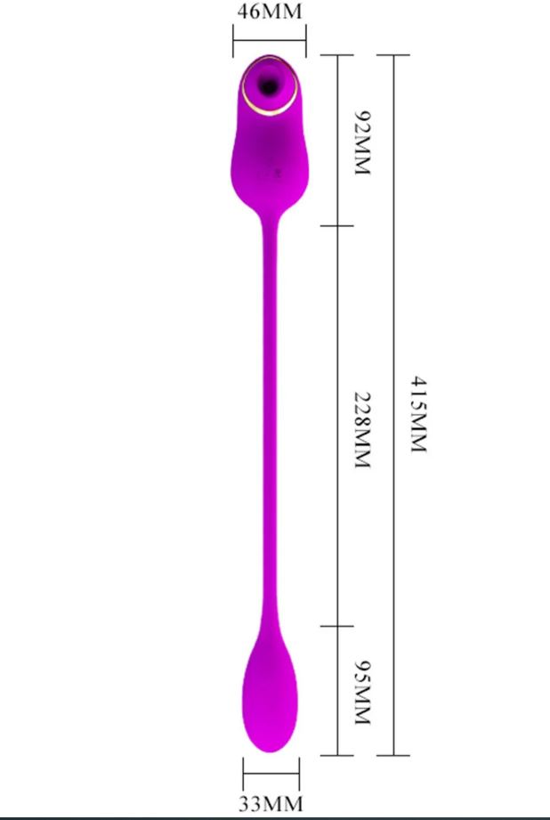 Размер: общая длина - 22,8 см., длина ваккумной стороны-9,2 см, ширина-4,6 см, длина виброяйца- 9,5 см ширина - 3,5 см