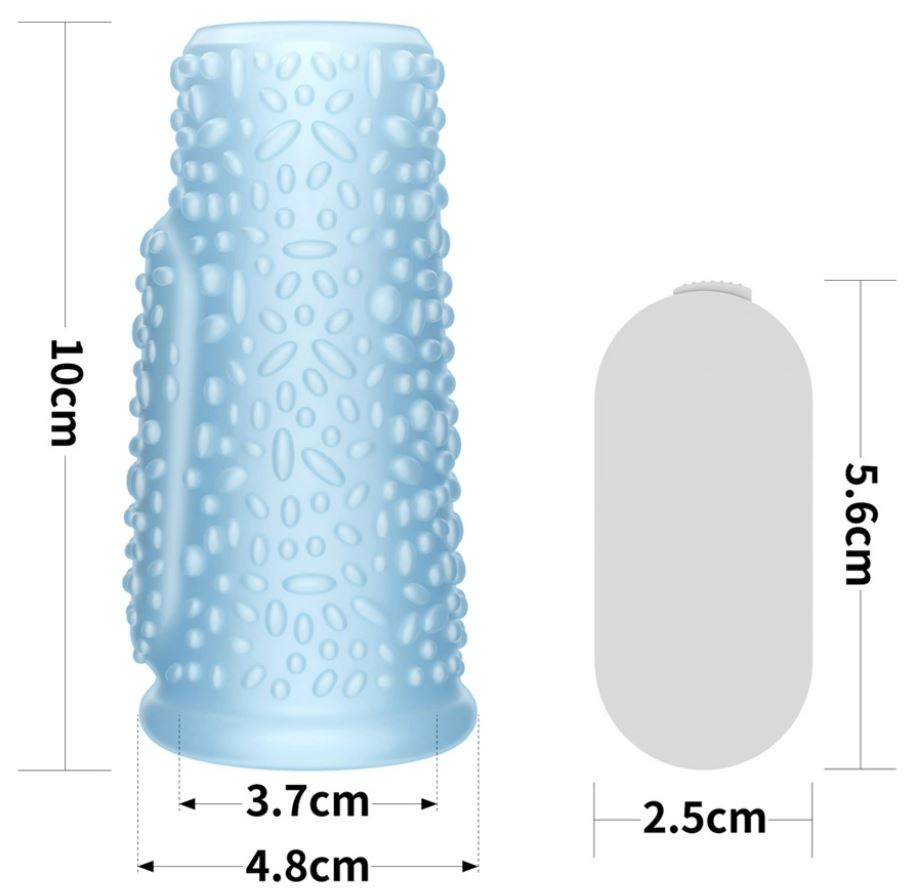 Размеры: насадка: общая длина 10 см, внутренний диаметр 3,7 см, внешний диаметр 4,8 см, вибропуля: длина 5,6 см, ширина 2,5 см