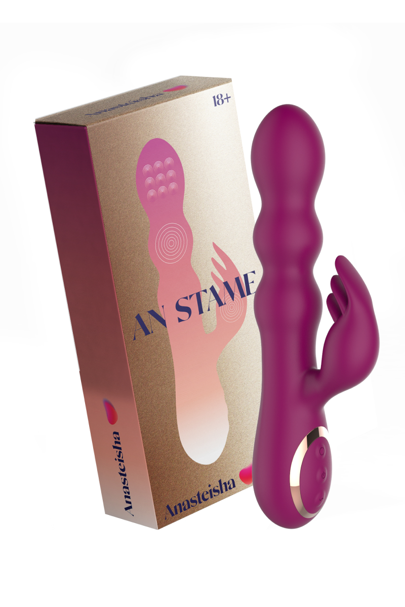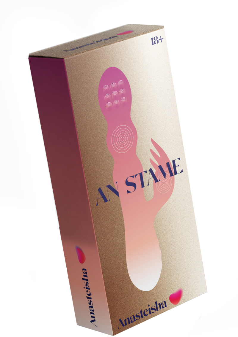 AN Stamen - оригинальный вибратор-кролик из премиального силикона с двумя независимыми моторами. Первый мотор находится на головке основного ствола и обеспечивает 7 режимов стимуляции бусинами, второй мотор обеспечивает интенсивную вибрацию на вагинальном и клиторальном отростках игрушки в 10-ти разных режимах.