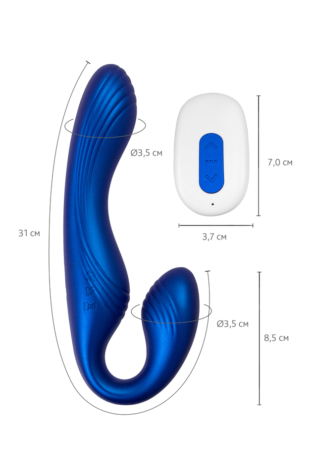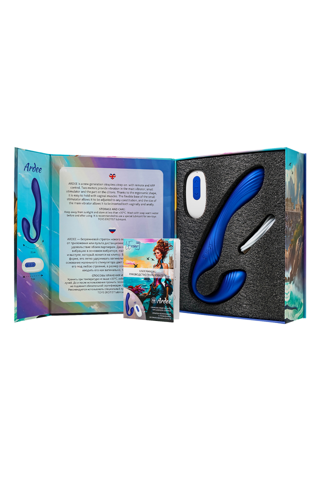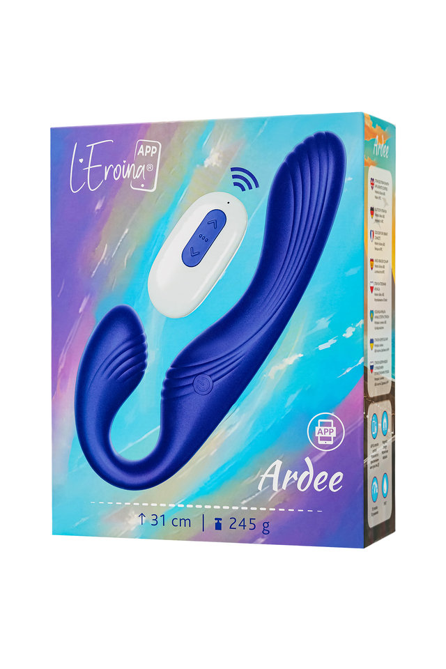 Готова к двойному удовольствию? Два мощных мотора вибрируют одновременно, посылая волну наслаждения и тебе, и твоему партнеру. Цвет синий металлик делает игрушку не только красивой, но и подчеркивает ее утонченность и технологичность. Этот страпон создан для игр, где каждый из партнёров может получать удовольствие. Ты можешь использовать его как для вагинальной, так и анальной стимуляции. Маленький стимулятор идеально подстраивается под твое тело, а эргономичная форма позволяет легко удерживать Ardee вагинальными мышцами (вес игрушки всего 245 гр), так что можно забыть о ремнях и полностью погрузиться в наслаждение.
