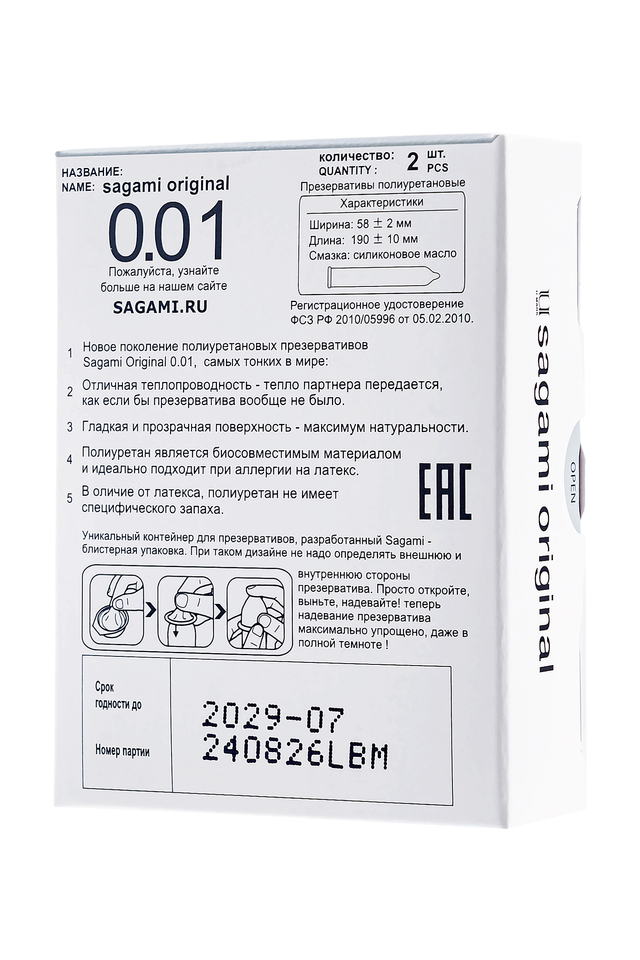Это новое поколение супертонких полиуретановых презервативов. Толщина в 0,01 мм настолько мала, что позволяет партнерам чувствовать только друг друга, а не презерватив. Несмотря на ультратонкие стенки, Sagami Original 0.01 очень прочны и так же надежно защищают, как их более плотные собратья. Они мгновенно принимают температуру тела человека и придают стимуляции совершенную естественность.