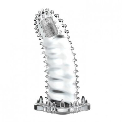 Гелевая насадка с шипованной поверхностью и встроенным мини-вибратором, который работает от соприкосновения, помогут доставить дополнительное удовольствие не только Вам, но и Вашему партнеру!