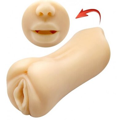Компактный мастурбатор с двумя отверстиями, имитирующими нежный ротик с губками и язычком и манящую вагину, не заставит вас скучать.