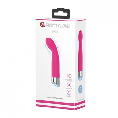 Вибромассажер для точки G Pretty Love John оснащен 12 различными режимами вибрации, которые с легкостью переключаются с помощью кнопочки в основании изделия.