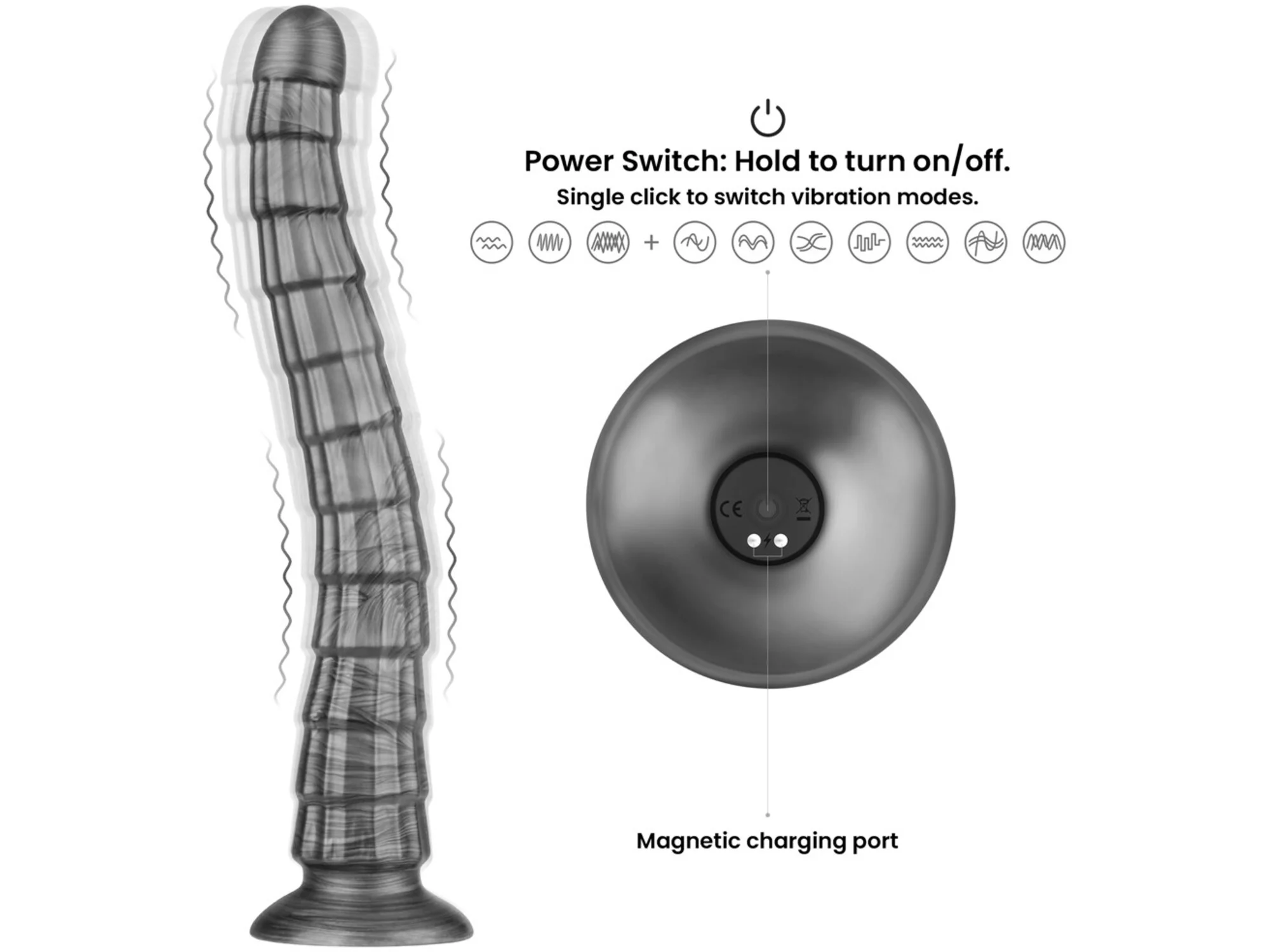 Гибкий вибратор с длиной 37 см. Этот вибратор создан, чтобы бросить вызов и удовлетворить даже самых опытных любителей анальных игр. Сочетание вибрации и длины подарит незабываемые впечатления. Позвольте силе тяжести направлять вас.