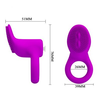 Кольцо изготовлено из высококачественного силикона, который прекрасно тянется, обеспечивая комфорт ношения. Стимулирующая зона имеет необычный рельеф в виде нескольких бугорков. Доступно 10 режимов вибрации.