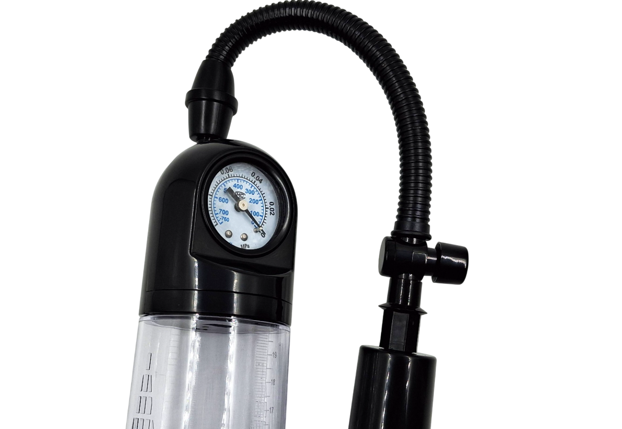 Само устройство состоит из прозрачной колбы, шланга с механическим насосом для откачки воздуха и эластичной манжеты. При создании вакуума внутри помпы (вакуум создается с помощью удобного насоса) вы можете видеть, что ваш пенис становится жестким и большим.
